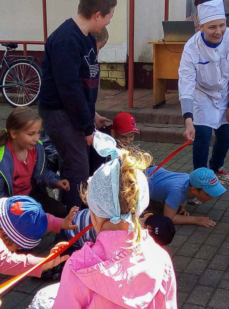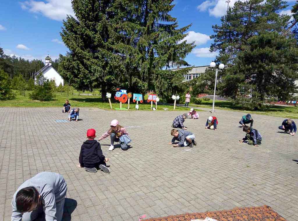 На площадке у Дома культуры собрались ребята из летнего оздоровительного лагеря «Акварельки» Вежской средней школы и малыши ГУО «Ясли-сад аг. Вежи».
