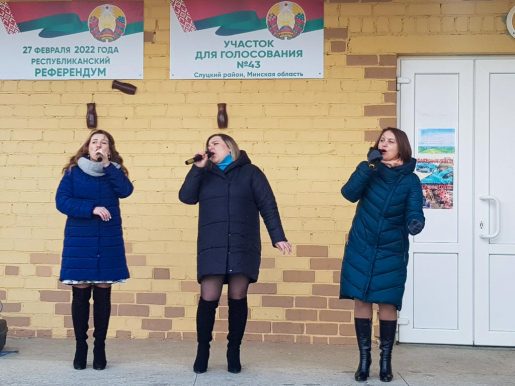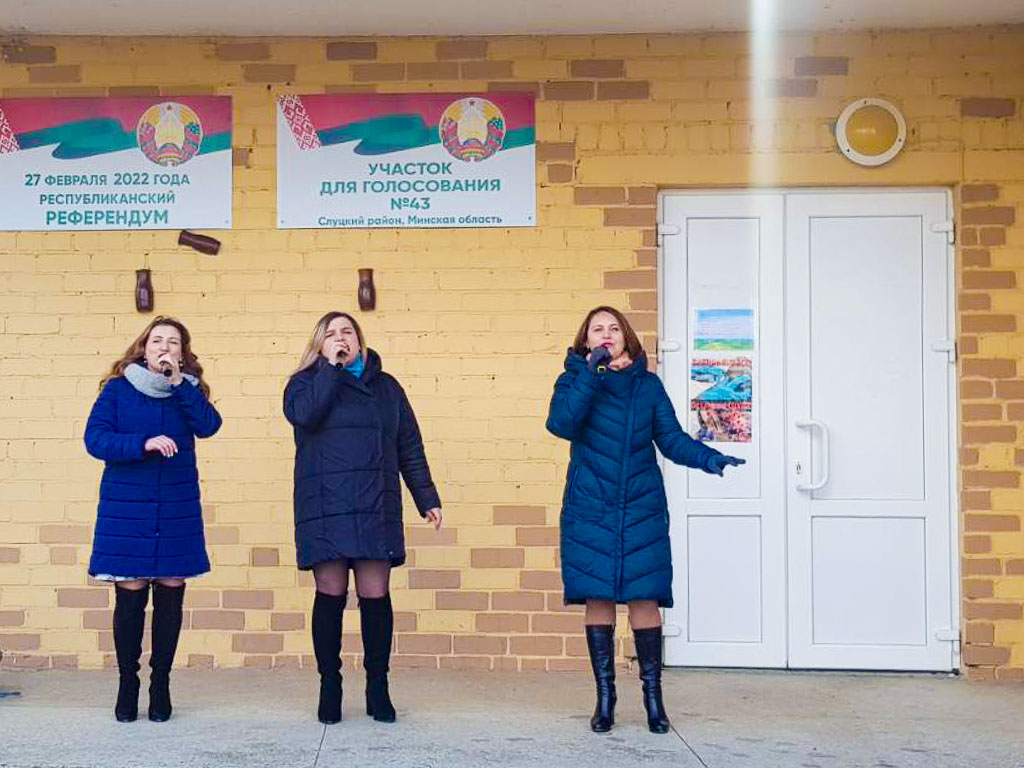 Артисты Случчины помогают сегодня создавать радостное настроение на участках для голосования. Праздничные концерты уже прошли во многих деревнях района и на участках в городе Слуцке. В ходе этих концертов было сказано много добрых слов в адрес наших артистов.