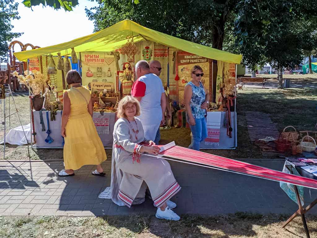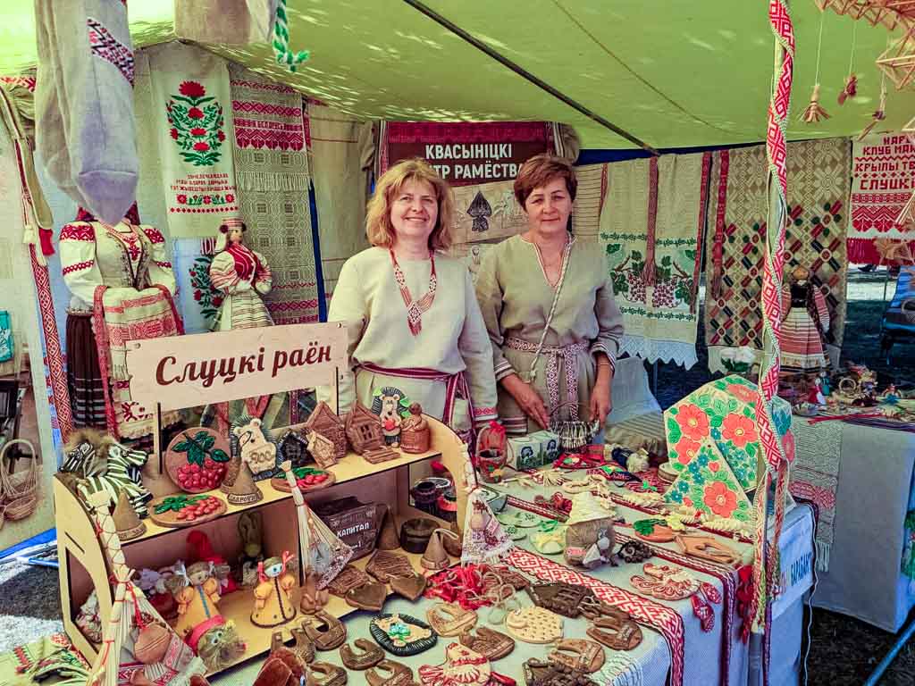Лучшие мастера ремесленники Случчины представляют сегодня свои работы на фестивале. Это мастера Квасыничского центра ремёсел, Квасыничского сельского дома культуры и Народного клуба народных мастеров «Крылы творчасці»: Наталья Матусевич, Лариса Ладоренко, Оксана Соловянова, Игорь Веракса, Людмила Булыга и Александр Пархимович.