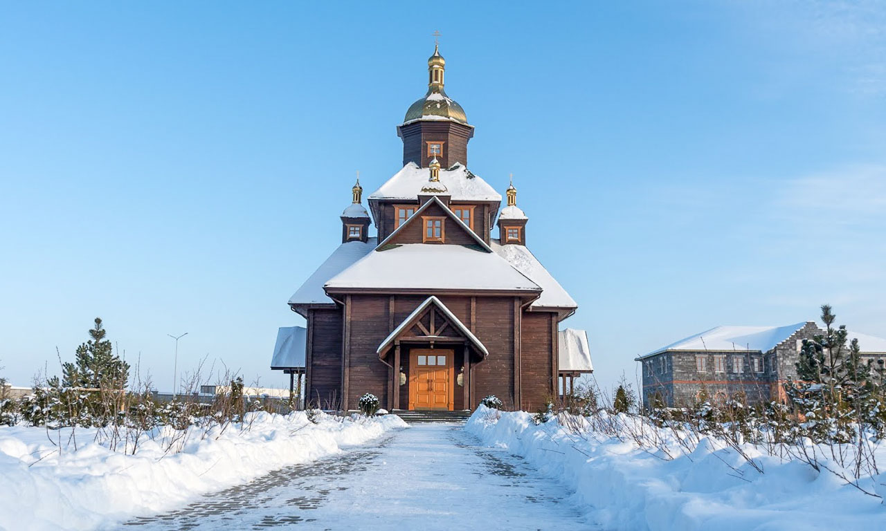 Стены храма выполнены из соснового бруса. Его высота – 28 м, вместимость – 800 человек. Все иконы храмового иконостаса написаны на Святой Горе Афон.