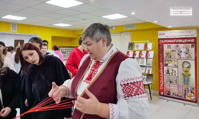 Заведующий Квасыничским центром ремёсел Наталья Матусевич рассказала об особенностях работы мастеров, об заготовке природного материала и его подготовке к работе, ответила на вопросы гостей презентации. Все желающие смогли попробовать научится делать пояса, плести из соломки, изготовить традиционную белорусскую куклу. Мероприятие прошло в тёплой, дружеской атмосфере.