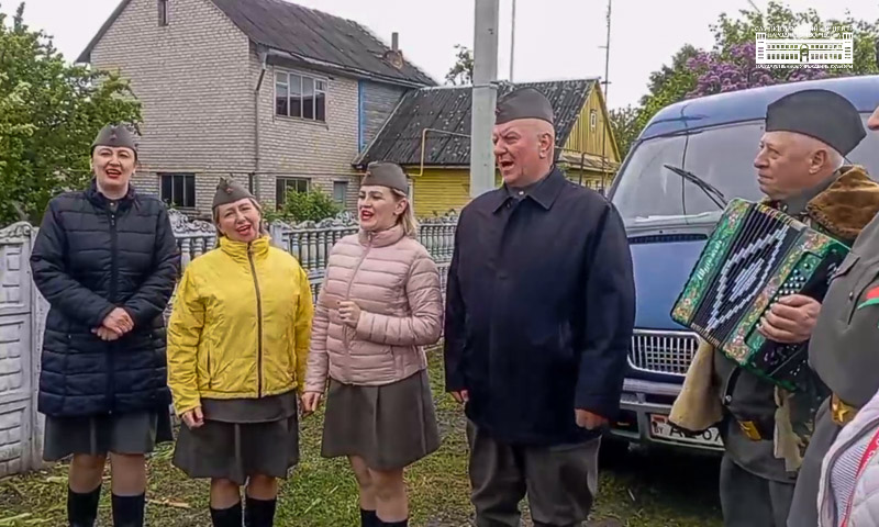 Теплые слова поздравлений сменялись вручением ветеранам подарков, словами благодарности, пожеланиями здоровья, радости, долголетия. Традиционно звучали песни «Катюша» и «День Победы». Как давно заведено, перед ветеранами выступала передвижная концертная бригада ГУК «Слуцкий районный центр народного творчества». На специально оборудованной «фронтовой» машине артисты исполняли песни военных лет, которые вместе с нашими дорогими ветеранами подпевали участники мероприятия. В этот раз в неё вошли работники и члены коллективов любительского художественного творчества Кировского и Козловичского сельских домов культуры: Светлана Расич, Оксана Костюкович, Оксана и Сергей Михнюк, Андрей Еременко.