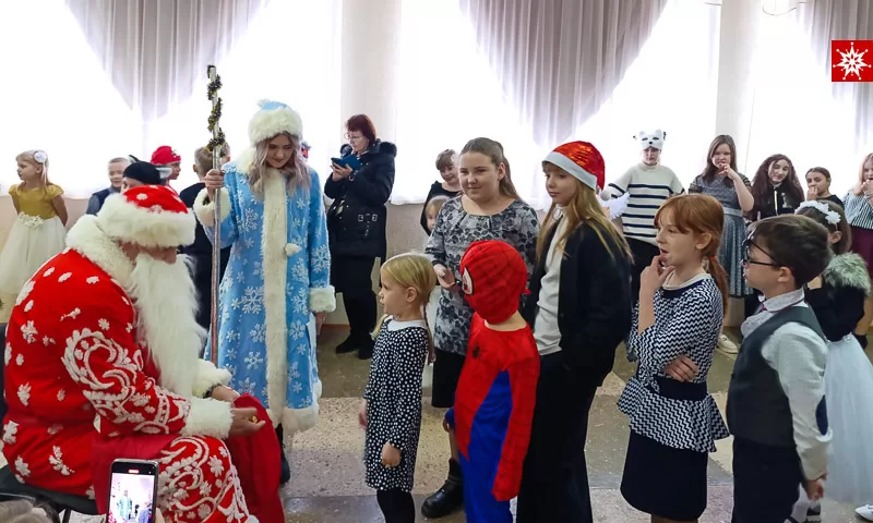 С появлением Деда Мороза и Снегурочки начался настоящий праздник с песнями, танцами, хороводом вокруг ёлки. Все гости смогли окунуться в праздничную атмосферу приключений. В завершении представления дети читали стихотворения Деду Морозу, фотографировались и получали новогодние подарки.