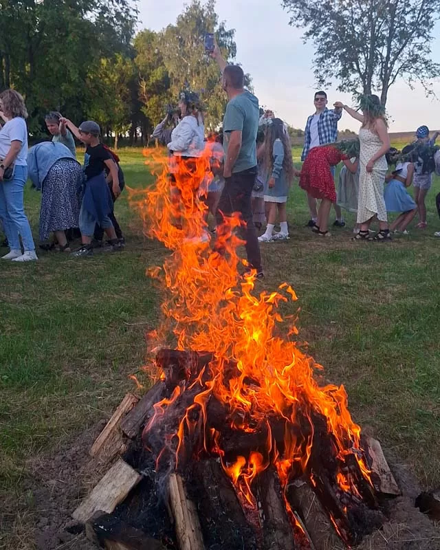 Добро победило. Нечисть исчезла. Запылал купальский костёр и закружились многолюдные хороводы. Все присутствующие веселились, играли, гадали, танцевали, прыгали через купальский очищающий огонь. Желающие могли загадать свои тайные желания в «Колесе желаний».