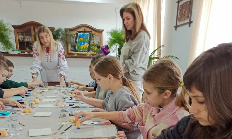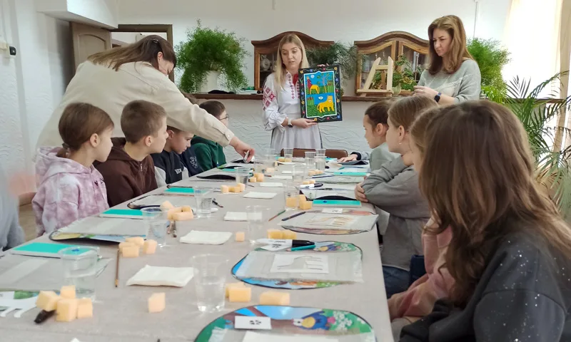 Мастер-класс провела Анастасия Брановец – вдохновлённый руководитель любительского коллектива «Творческая линия». Под её чутким руководством дети создавали декоративные салфетки в технике маляванка, вдохновляясь работами знаменитой слуцкой художницы-примитивистки Алёны Киш.