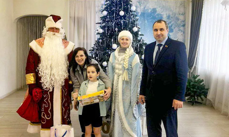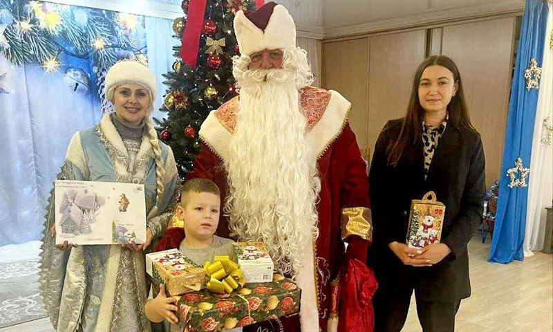 6‑летний Богдан попросил у Деда Мороза автобус. Его мечту исполнил председатель Слуцкого районного Совета депутатов Александр Курак. Вместе с Дедом Морозом и Снегурочкой он поздравил мальчика с праздником и вручил подарок.